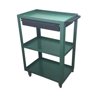 Carro para ferramentas c/gaveta (vai desmontado) 96alt.x73co mp.x42larg.em cm, ate 85kg de carga, 4 rodas(2 fixas/2 gir.) ,puxador, 3 pratel. 1 gaveta c/ 8alt.x53comp.x41larg. em cm